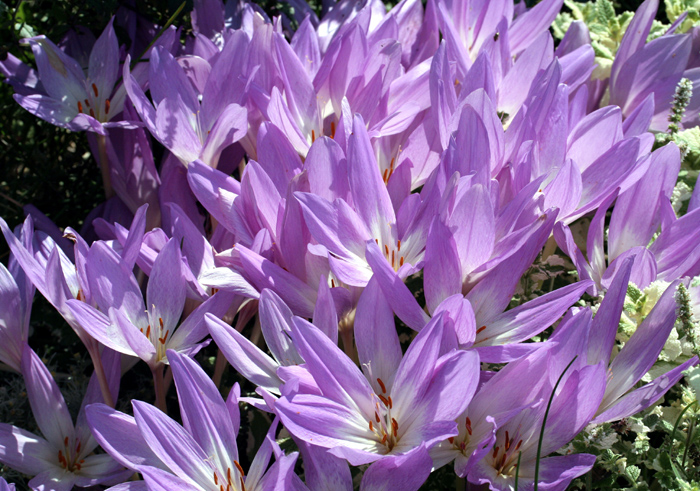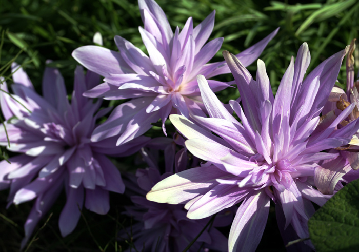 今秋、自宅の庭で撮影したものです。初秋に花のみが出現し春には葉が出現します。球根だけでも机上で開花します。この球根から抗痛風剤のコルヒチンがとれます。写真は八重咲きのものですが一重咲きもあります。たまにアイヌネギと間違って収穫して中毒になる場合もあるので注意が必要です。