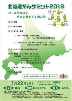 北海道がん対策「六位一体」協議会の主催により「北海道がんサミット2018」を開催いたします。